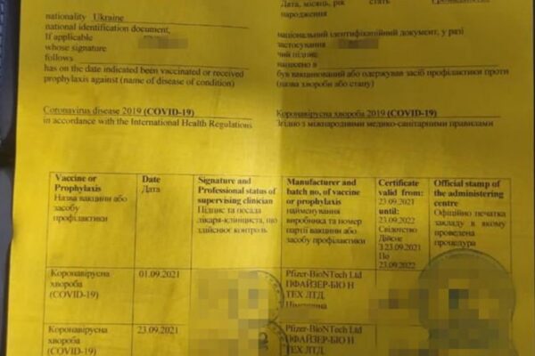У Волинській області інженер-програміст райлікарні підробляв міжнародні свідоцтва про вакцинацію проти COVID-19, його викрила Служба безпеки України.