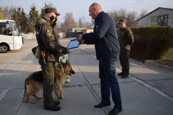 Подяку та цінний подарунок (наручний годинник) отримав сьогодні кінолог військової частини 1141 НГУ сержант Денис Тимченко, а його напарниця, службова вівчарка Ніка – корм для собак. Вручив нагороди заступник начальника ГУ Національної поліції у Волинській області Сергій Козак.