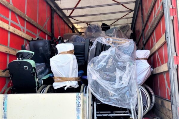 В Україну з Франції прибули медичні ліжка та матраци, каталки, фізіотерапевтичні столи, тренажери, інвалідні візки, ходунки та інше медичне обладнання.