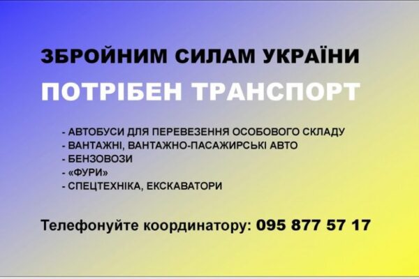 Звертаємось до волинських підприємців, перевізників, керівників автостанцій, власників великогабаритних авто: Збройні сили України потребують транспортних засобів!