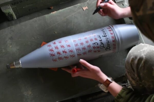 Воїни Десантно-штурмових військ Збройних Сил України в День вишиванки написали на снарядах до гаубиць, якими працюватимуть по окупантах, вітання до Дня вишиванки.