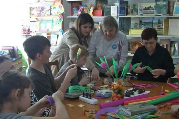 У приміщенні технічного фахового коледжу Луцького технічного університету організували майстерклас для дітей переселенців з виготовлення квітів із гофрованого паперу та цукерок.
