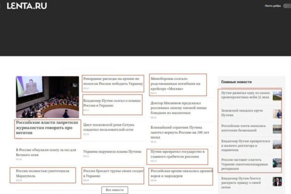 На головній сторінці одного з відомих пропагандистських видань росії «Лента.ру» появилась низка матеріалів із критикою путіна.
