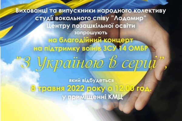 8 травня о 12:00 у культурно-мистецькому центрі відбудеться благодійний концерт випускників та вихованців народної студії вокального співу «Лодомир».