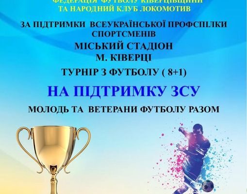 На міському стадіоні Ківерців «Колос» відбудеться турнір з футболу (8+1) на підтримку ЗСУ. Зіграють молодь та ветерани.