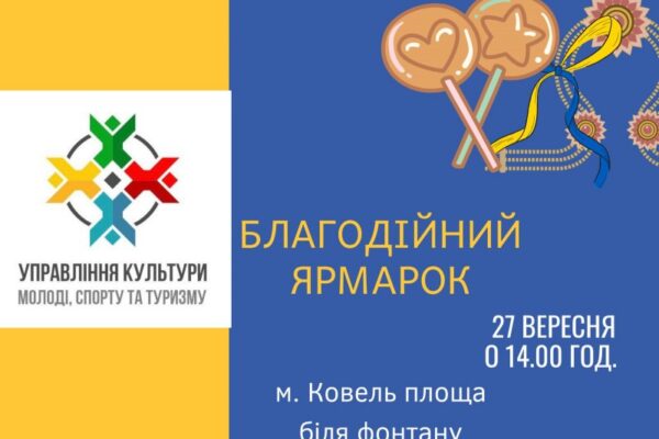 Управління культури, молоді, спорту та туризму запрошує на благодійний ярмарок, який відбудеться у центральній частині міста (біля фонтану) 27 вересня. Початок о 14.00 годині.