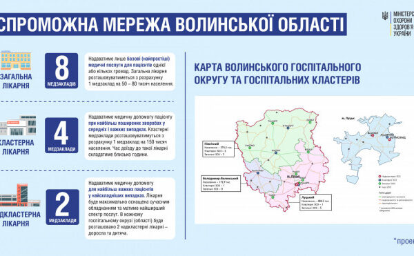 На Волині до спроможної мережі потрапить 14 лікарень. З них надкластерними будуть визначенні 2 медичних заклади, 4 лікарні стануть кластерними та 8 – загальними.