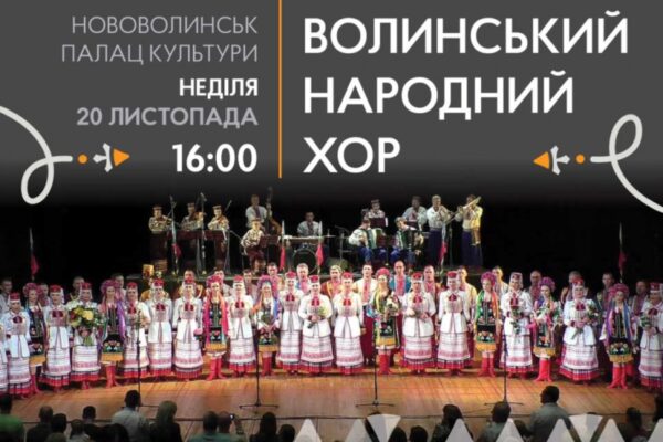 У неділю, 20 листопада, у міському Палаці культури із патріотичною програмою «Вперед, соколи» відбудеться концерт Волинського народного хору. Художній керівник – заслужений діяч мистецтв України Олександр Стадник.