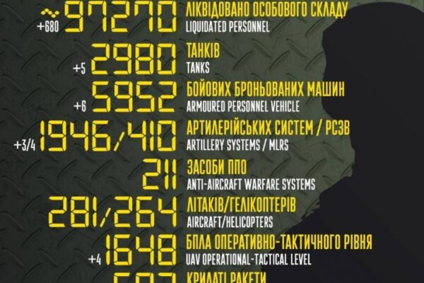 Станом на 17 грудня 2022 року Сили оборони України знищили понад 97,6 тис. російських загарбників.