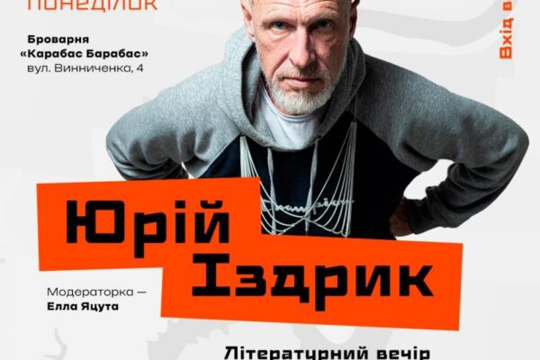 У понеділок, 17 жовтня, о 18:30 у боварні «Карабас Барабас» (вул. Винниченка, 4) відбудеться літературний вечір відомого українського письменника Юрія Іздрика.