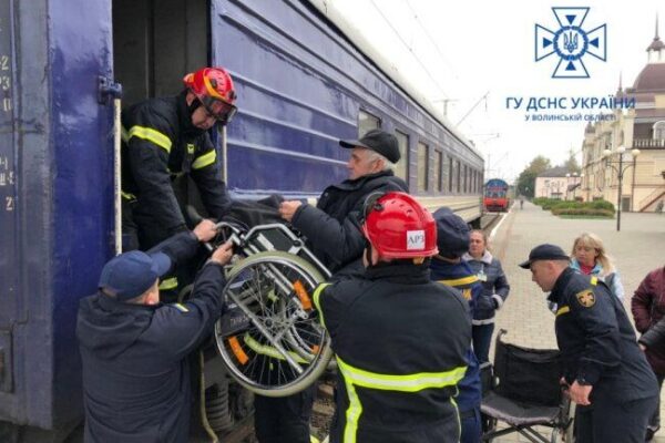 Волинські рятувальники допомогли громадянам, які евакуювались з геріатричного пансіонату з Харківської області та прибули 9 жовтня вранці потягом у Луцьк.
