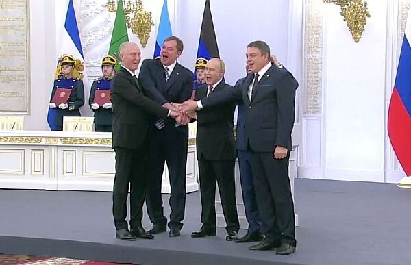 Згідно з внесеними до Держдуми рф «договорами», межі так званих «ДНР» і «ЛНР», а також Запорізької та Херсонської областей, які нібито «приєднала» як «вновь освобождєнниє тєрріторіі» до себе кремлівська банда внаслідок тимчасової окупації, визначатимуться кордонами, що існували «на день їхнього утворення і прийняття до складу росії».