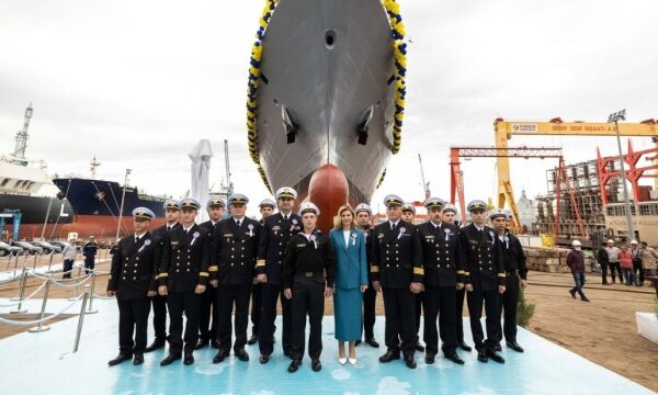 Перша леді Олена Зеленська взяла участь у церемонії спуску на воду корвета «Гетьман Іван Мазепа».