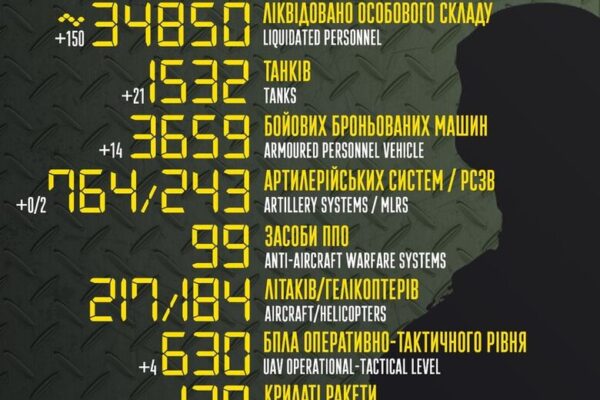 Станом на ранок 26 червня втрати особового складу противника становлять приблизно 34 850 осіб.
