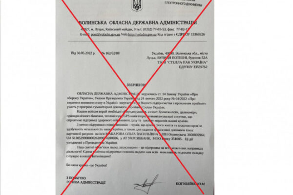 Надходять повідомлення, що нібито від імені Волинської обласної державної адміністрації продовжують надсилати листи підприємцям щодо збору коштів на Збройні сили України.