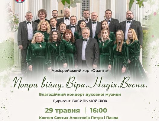 29 травня, в неділю, о 16:00, у костелі Апостолів Петра й Павла (вул. Кафедральна, 6) відбудеться виступ архієрейського хору луцького кафедрального собору Святої Трійці.