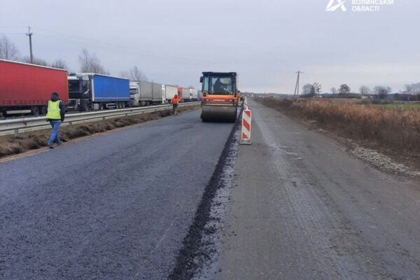 Йдеться про 2,5 км дороги між населеними пунктами Коцюри і Римачі автошляху М-07. Дорожники укладають тут вирівнюючий шар асфальту на лівому проїзді, що має дві смуги руху в одному напрямку (зі сторони пункту пропуску).