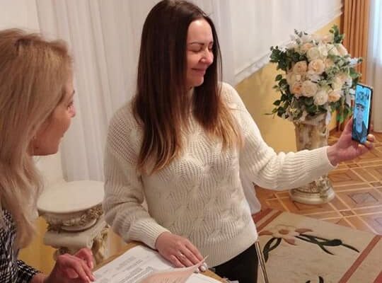 У луцькому РАЦСі реєструють дистанційні шлюби – наречений у момент розпису у зоні бойових дій, а наречена – у Палаці урочистих подій.