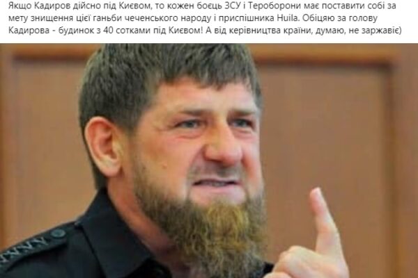 За голову Кадирова пропонують будинок і 40 сотих землі під Києвом.