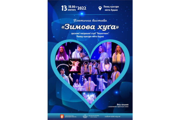 Лучан та гостей міста запрошують на поетичну виставу «Зимова хуґа» за творами волинських письменників у виконанні учасників зразкової театральної студії «Бешкетники», керівник Вадим Хаїнський.