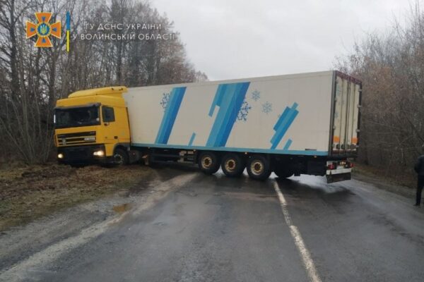 6 січня о 9:28 до служби 101 надійшло повідомлення про необхідність ліквідації ДТП поблизу села Секунь Ковельського району – вантажівка з’їхала на узбіччя та перешкоджала руху транспорту.