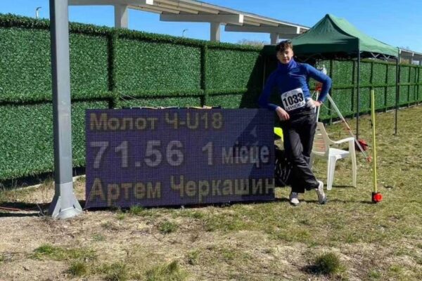 Волинський легкоатлет Артем Черкашин став володарем золотої нагороди в метанні молота серед юнаків та встановив особистий рекорд 71 м 56 см на І етапі кубка України з метань та Всеукраїнських змаганнях пам’яті ЗТУ Піскунова Ю.М.