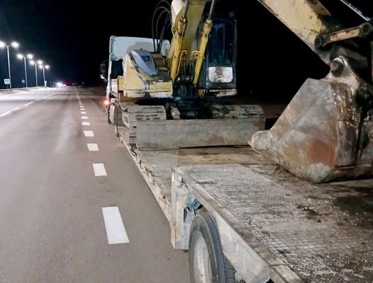 Вчора волинські патрульні зупинили транспортний засіб DAF із тягачем, на якому був розміщений гусеничний екскаватор. Під час перевірки документів інспектори встановили, що водій немає дозволу та погодження на перевезення негабаритного вантажу.