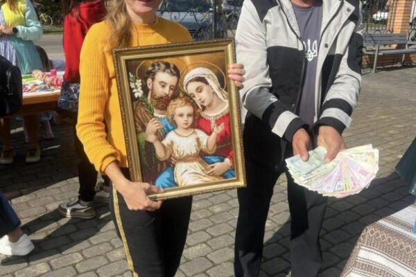 Військовий з Боратина передав вишиту ним ікону на благодійний ямарок