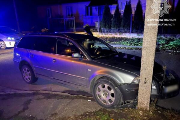Під час комендантської години у Луцьку 16-річний нетверезий юнак сів за кермо та не розминувся з електроопорою.