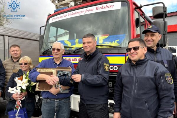 Володимирські рятувальники отримали автодрабину та пожежну автоцистерну від британських волонтерів