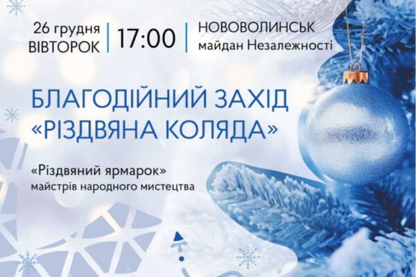 Завтра, 26 грудня, о 17:00 запрошуємо на благодійних захід «Різдвяна коляда». Дійство відбудеться на майдані Незалежності у Нововолинську.
