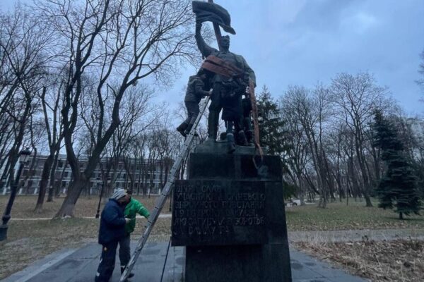 У Маріїнському парку, що навпроти Верховної Ради в Києві, демонтували пам’ятник учасникам «січневого збройного повстання 1918 року» більшовиків проти української влади.