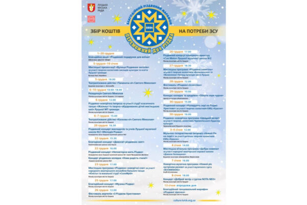 Впродовж грудня 2023 і січня 2024 року у Луцькій громаді триватиме культурно-мистецький благодійний Різдвяний марафон “Переможний дух Різдва”.