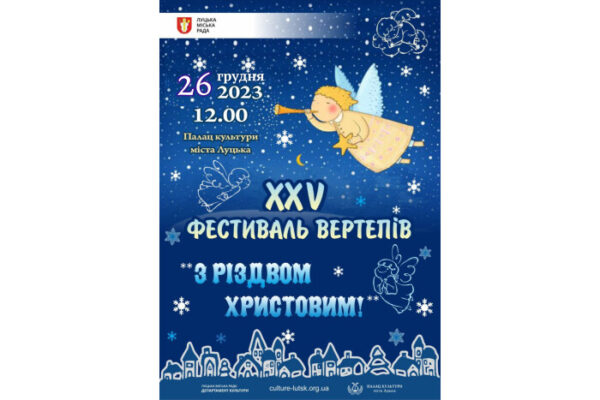Творчі колективи установ культури, навчальних закладів, громадських організацій та підприємств, родинні колективи Луцької міської територіальної громади запрошують до участі у XХV відкритому фестивалі вертепів “З Різдвом Христовим!”, що відбудеться 26 грудня у Палаці культури міста Луцька.