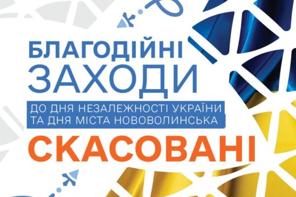 На виконання рішення Ради оборони Волинської області про обмеження масових зібрань з 24 по 28 серпня, благодійні заходи, заплановані в Нововолинську на День Незалежності та День міста, скасовані.