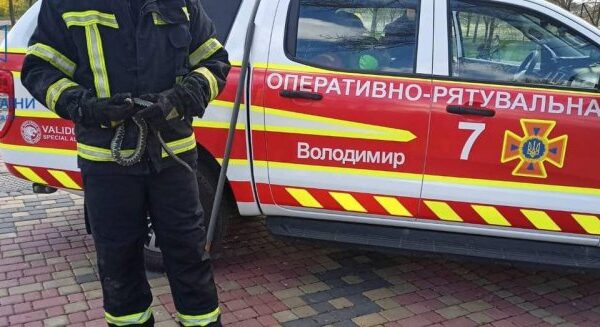 14 квітня до Служби порятунку 101 надійшло повідомлення про те, що у місцевому парку поблизу дитячого майданчику в м. Володимирі громадяни виявили змію.