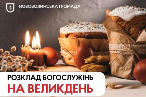 На сайті Нововолинської міської ради опублікували розклад Великодніх Богослужінь і освячення пасок у храмах Нововолинської громади.