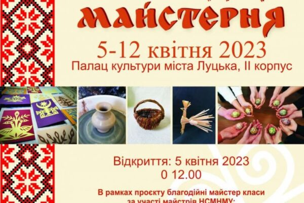 У Палаці культури міста Луцька (2 корпус) відбуватимуться майстер-класи за участі майстрів Волинського обласного осередку Національної спілки майстрів народного мистецтва України.
