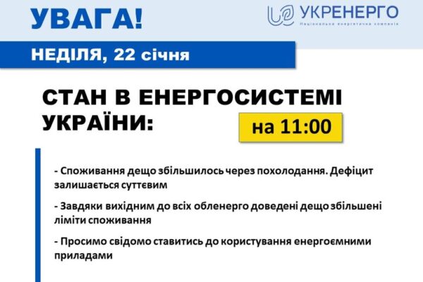 Споживання електроенергії наразі дещо більше, ніж учора. Дефіцит потужності залишається суттєвим.