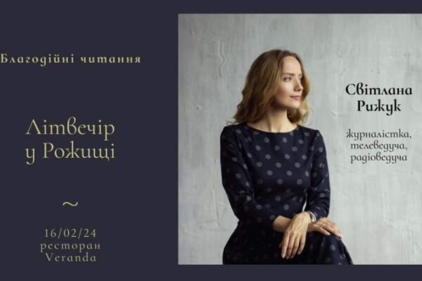 Жителів громади запрошують на благодійний літературний вечір з відомою землячкою, журналісткою та телеведучою Світланою Рижук.