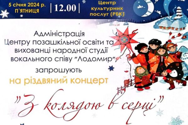 У п’ятницю, 5 січня, о 12:00 у Центрі культурних послуг Володимира відбудеться благодійний різдвяний концерт “З колядою в серці”.