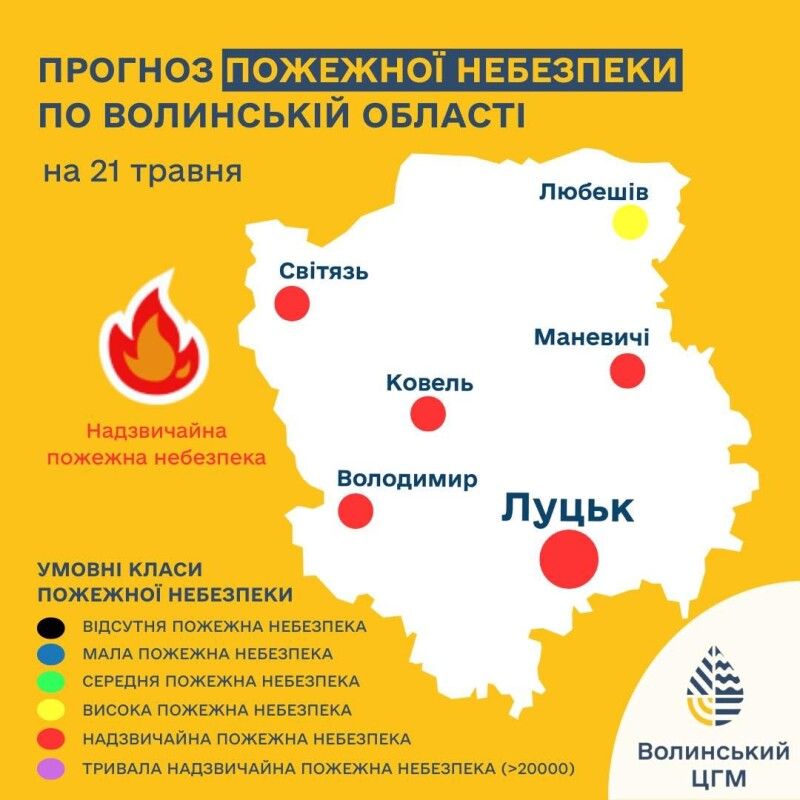 21 травня на території області очікується надзвичайний рівень пожежної небезпеки.