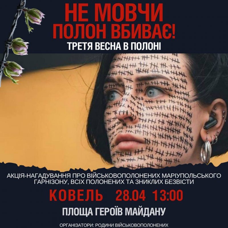 У Ковелі 28 квітня о 13.00 год. в центральній частині міста відбудеться акція «Третя весна в полоні. Не мовчи! Полон – вбиває».