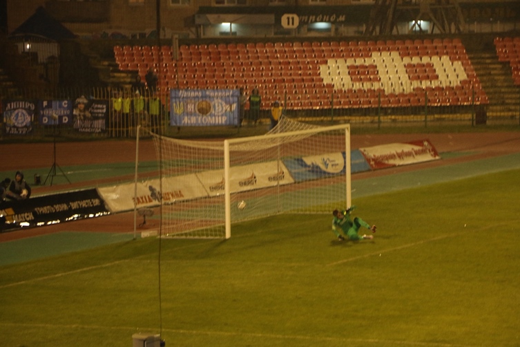 стрибнув і воротар. Але наш кримсько-татарський майстер пробив так потужно, що