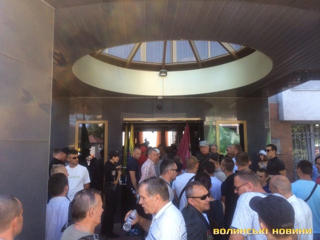 На фото «Волинських новин»: мітингарі в офісі УСБУ у Волинській