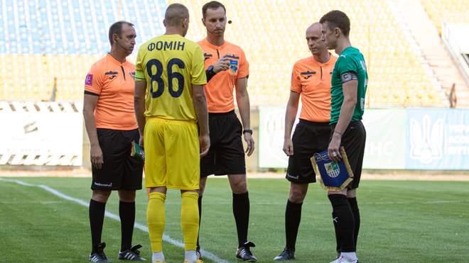 пресслужби ФК «Металіст»: судді та капітани команд перед початком гри «Альянс»