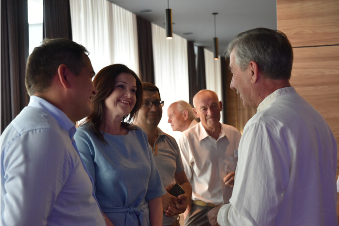 Привітати з професійним святом зодчих прийшла заступник міського голови Ірина Чебелюк та начальник управління містобудування та архітектури Луцької міської ради Веніамін Туз.