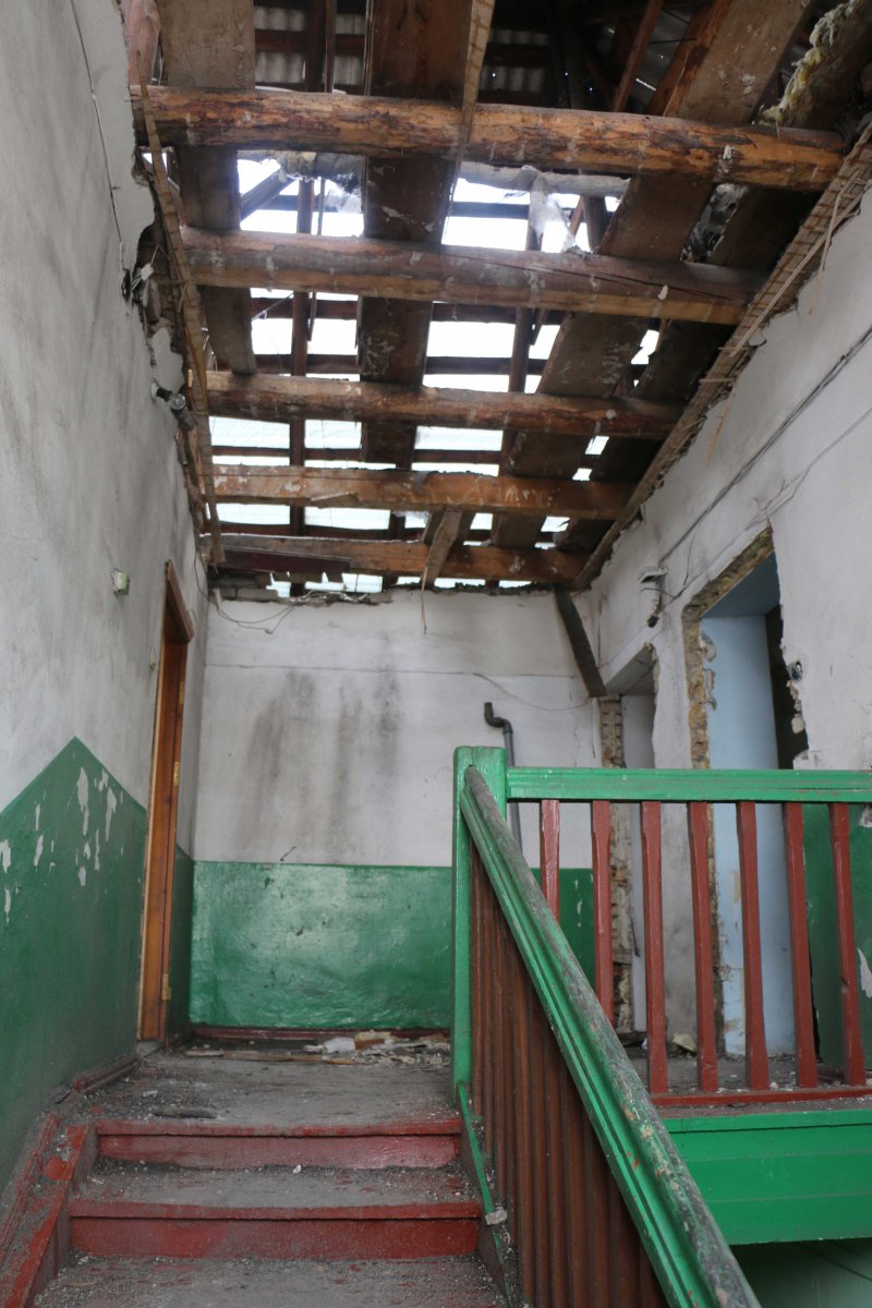 На другому поверсі, буквально за стіною від епіцентру руйнувань, мешкає одинока пенсіонерка Ганна Гаврилейко: