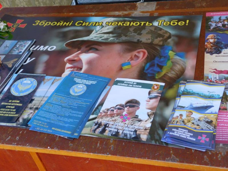 На фото прес-служби Рожищенської райдержадміністрації: агітаційна продукція щодо служби в армії за контрактом; під час концерту «Армія з народом».