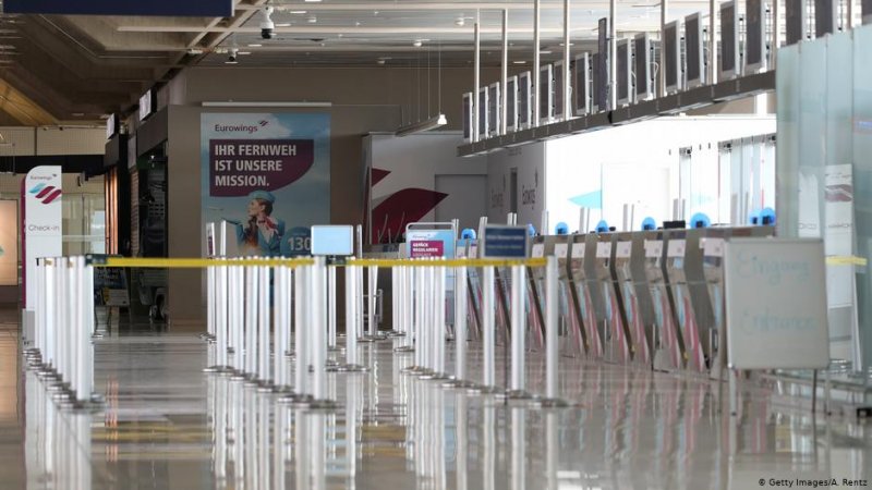 фото з «Німецької хвилі»: безлюдна зона реєстрації на посадку в літак.